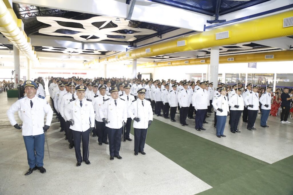 Cerimônia valoriza policiais e bombeiros com ascensão nas carreiras.